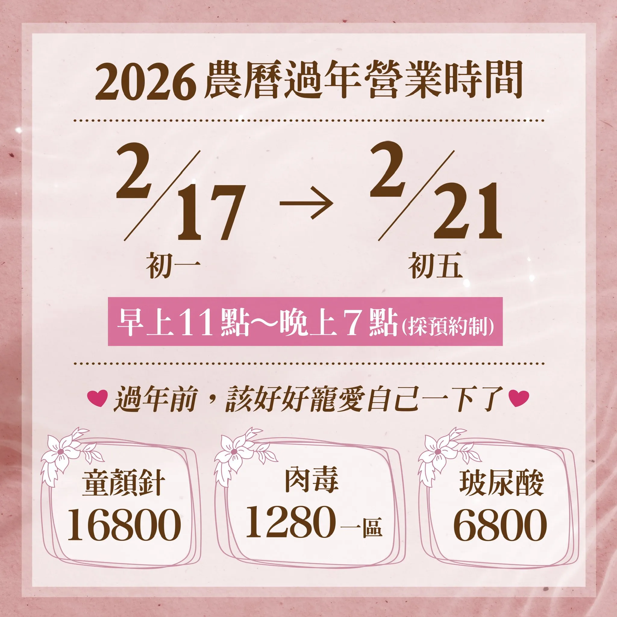 平常很忙的人有福了,我們過年可以預訂時間服務~
